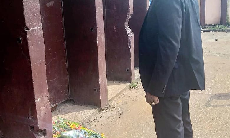 Bah Oury dépôt de gerbe de fleurs à l’entrée du stade.