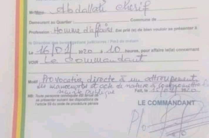 Cherif Mohamed Abdallah du Goha, convoqué pour attroupement, manoeuvre et acte de nature à compromettre la sécurité publique. On rogne en silence notre espace de liberté. A qui le tour prochain?