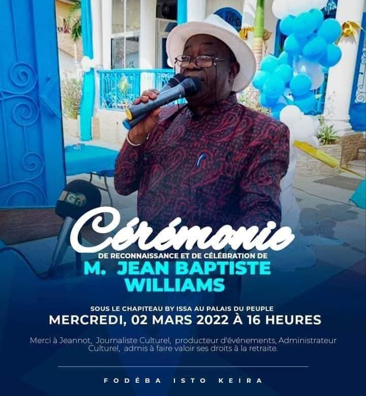 En saluant l’initiative de notre frère Fodeba Keïra de rendre de son vivant hommage à cette riche carrière dont seul l’aspect fonctionnaire est « victime » des impératifs administratifs, il est important que les refondateurs du CNRD retiennent que la retraite d’un Patrimoine aussi riche et actif que Jean Baptiste Williams donne le sentiment d’un goût d’inachevé, une forme de privation de soi-même, donc un gâchis.