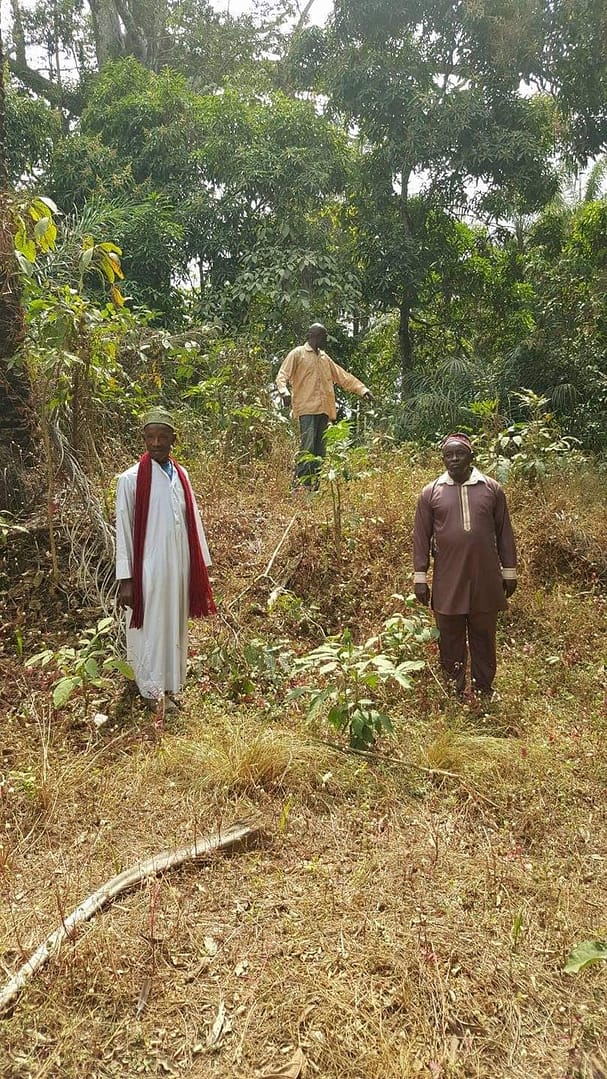 Sur la photo : l’homme en blanc est Karamoko Baba, descendant de Nyara Beli et de son troisième mari, un Karamoko, celui qu’elle épousa après Beker et Lightburn. Les deux jeunes avec lui, sont des descendants des soldats de Farinya.