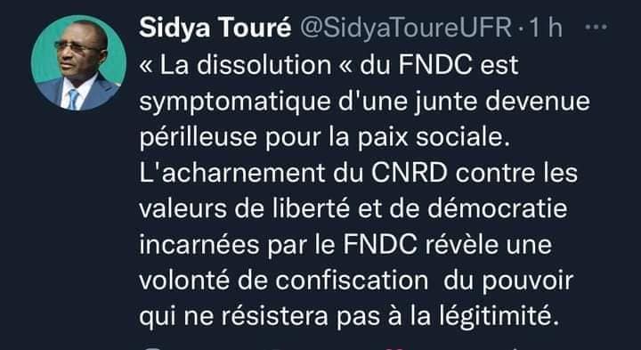 LA RÉACTION DU PRÉSIDENT SIDYA TOURE SUITE À LA « DISSOLUTION » DU FNDC