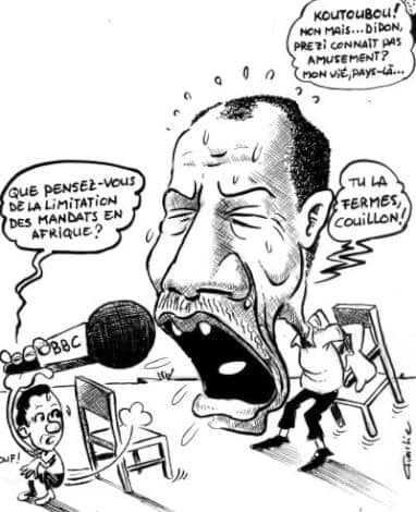 L’impénitent journaleux ne lâche pourtant pas prise : « Mettons de côté les ONG, les puissances étrangères. Est-ce que sur ce sujet justement de la limitation des mandats, l’Afrique du sommet est en adéquation avec l’Afrique de la base ? (…) » Le Grimpeur esquive la question, et donne des leçons au con(.)frère : « Ce n’est pas à moi de vous répondre. Faites vos enquêtes auprès des peuples africains, faites vos enquêtes. On va arrêter là, je n’accepte pas ce débat. J’ai dit que les peuples africains discuteront.