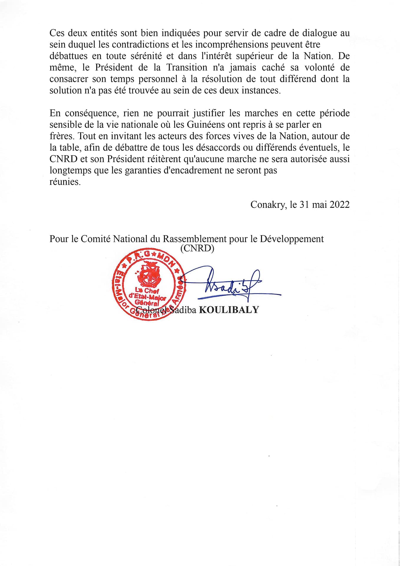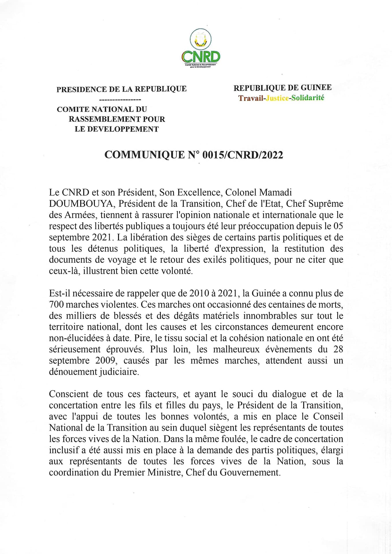 Nous n’allons pas nous soumettre à cette interdiction de manifestation dictée par le CNRD. Ce que nous n’avons pas céder pour Alpha Condé, ce n’est pour une JUNTE que nous allons céder. Foniké Menguè sur TV 5 MONDE.