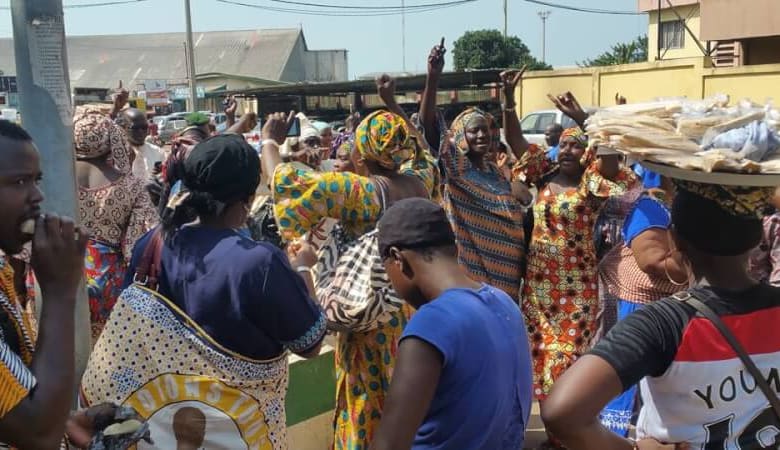 Manifestations de colère des femmes mareyeuses contre le Ministre de la Pêche de Guinée. Elles rendent responsable Édouard Loua le monopole du marché de poissons par des ressortissants Chinois qui ont installé des containers sur des sites dans la capitale.