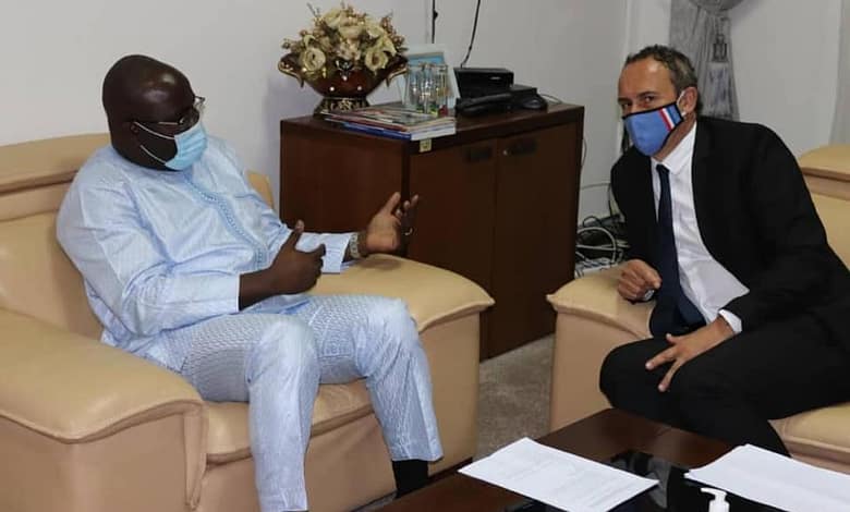 Prise de contact avec les diplomates accrédités en Guinée. SE Dr. Ibrahima Khalil KABA, Ministre des Affaires Étrangères et des Guinéens de l’Étranger s’est entretenu ce lundi avec SEM Marc FONBAUSTIER, Ambassadeur de France en Guinée.