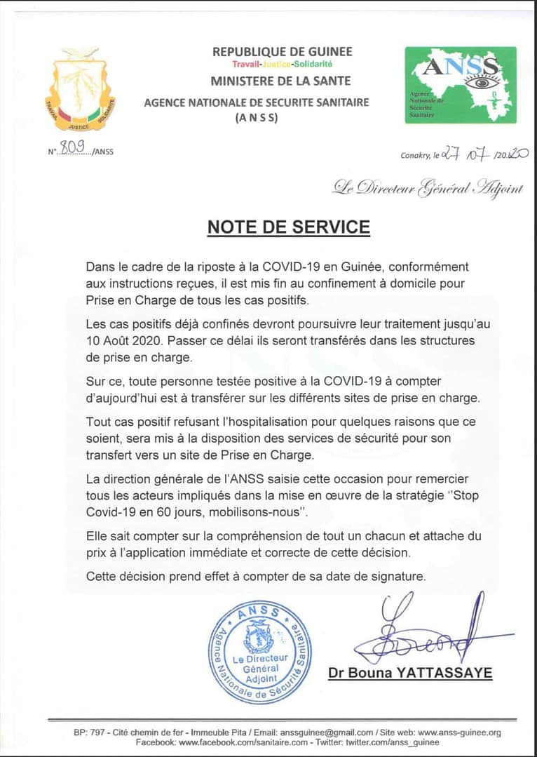 Note de service relative à la fin du confinement à domicile dans le cadre de la stratégie Stopcovid19en60jours.