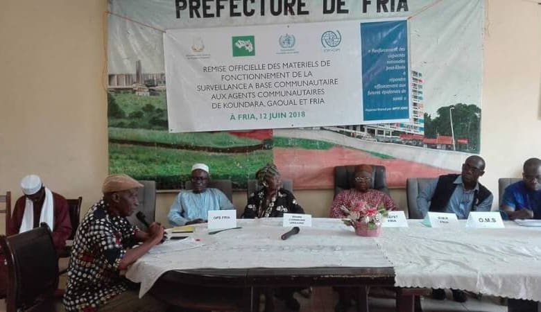 INFO SANTÉ PUBLIQUE : L’organisation Internationales pour les migrations (OIM), en partenariat avec l’Organisation Mondiale pour la santé (OMS) ont procédé le 12 juin 2018 à Fria, à la cérémonie de remise officielle des matériels de fonctionnement aux agents communautaires . Ces 759 Vélos permettront de faciliter la remontée rapide des maladies ainsi que les évènements de santé publique.
