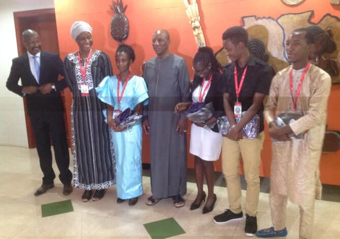 Le Président de la République, le Professeur Alpha Condé, a reçu dans la soirée du jeudi 21 juin 2019 au Palais Sekhoutouréya, les lauréats de la 4ème édition de la semaine du numérique qui s’est tenue du 11 au 14 juin 2019 au siège de l’ARPT (Autorité de régulation des postes et télécommunications) à Koloma. Ce sont au total 3 jeunes qui ont remporté des prix dans le domaine des nouvelles technologies. Il s’agit de Fatima Diawara qui a créé une nouvelle marque de smartphone ouest-africain intitulé ”Kunfabo“, Mariama Cissé qui est fondatrice de Labitany un terme qui signifie hôpital (l’application qui numérise la gestion des hôpitaux) et Serge Abraham Thadee, concepteur de jeux vidéos qui valorise la culture africaine.