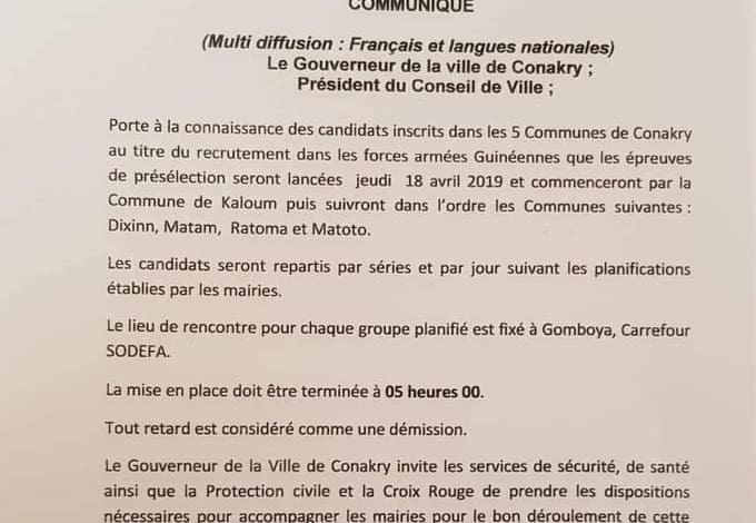 URGENT/GOUVERNORAT DE LA VILLE DE CONAKRY (COMMUNIQUÉ)
